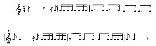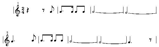 (half notes, dotted quarter notes, eighth notes, and dotted eighth notes)